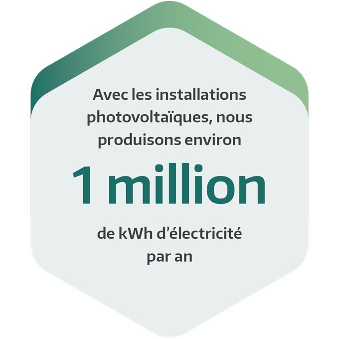 Environ un million de kWh d'électricité - nous produisons cette quantité impressionnante d'énergie renouvelable grâce à des installations photovoltaïques sur nos sites en Autriche, en Pologne et en Italie. Et nous rendons ainsi moins dépendants des fournisseurs externes.